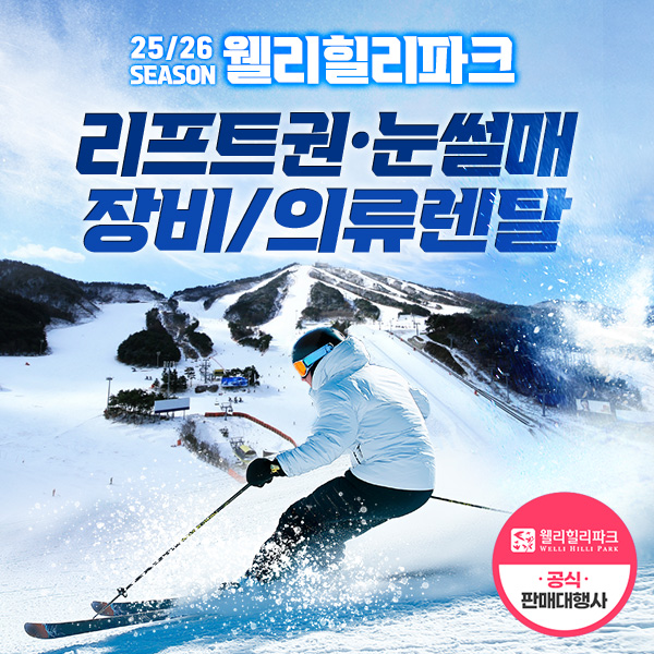 [강원] 25/26 웰리힐리 스키리프트권/장비렌탈/의류렌탈/눈썰매 이용권(12/12~3/1)