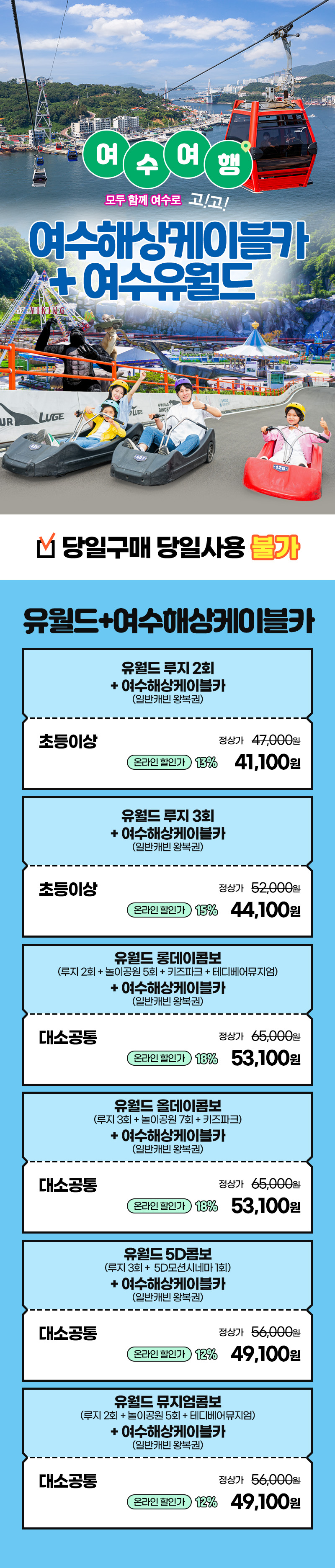 - 주소 : 전남 여수시 소라면 안심산길 155 여수유월드테마파크