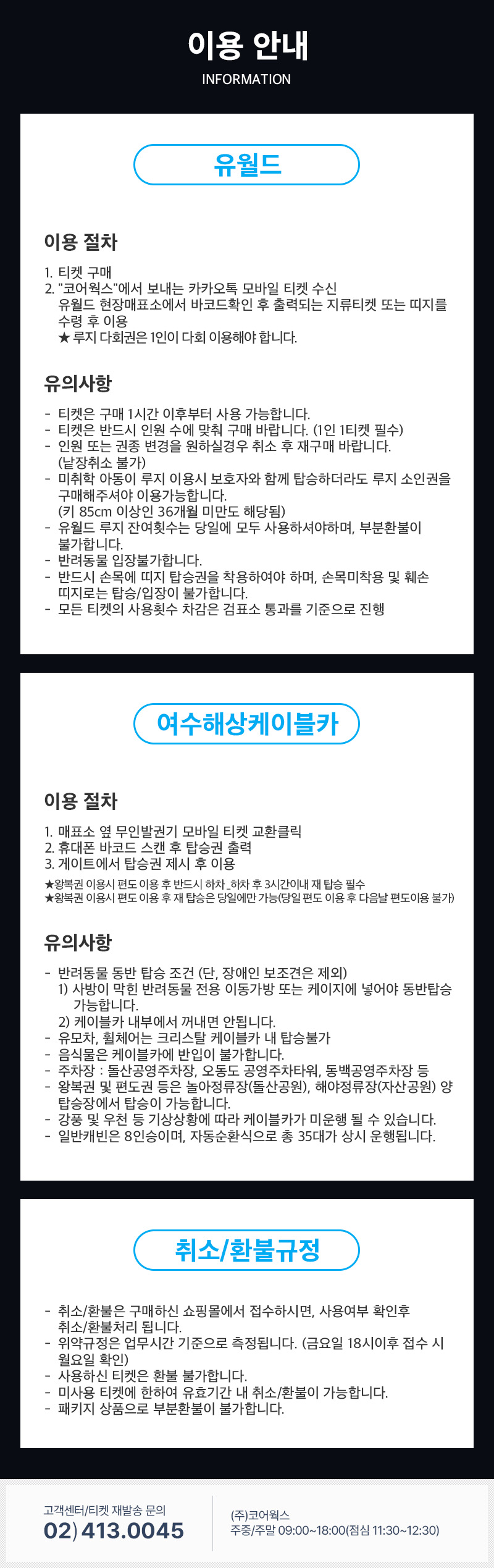 탑승권 발권 후 이용시간 부족, 테마파크 혼잡 등으로 인한 취소/환불 불가합니다.