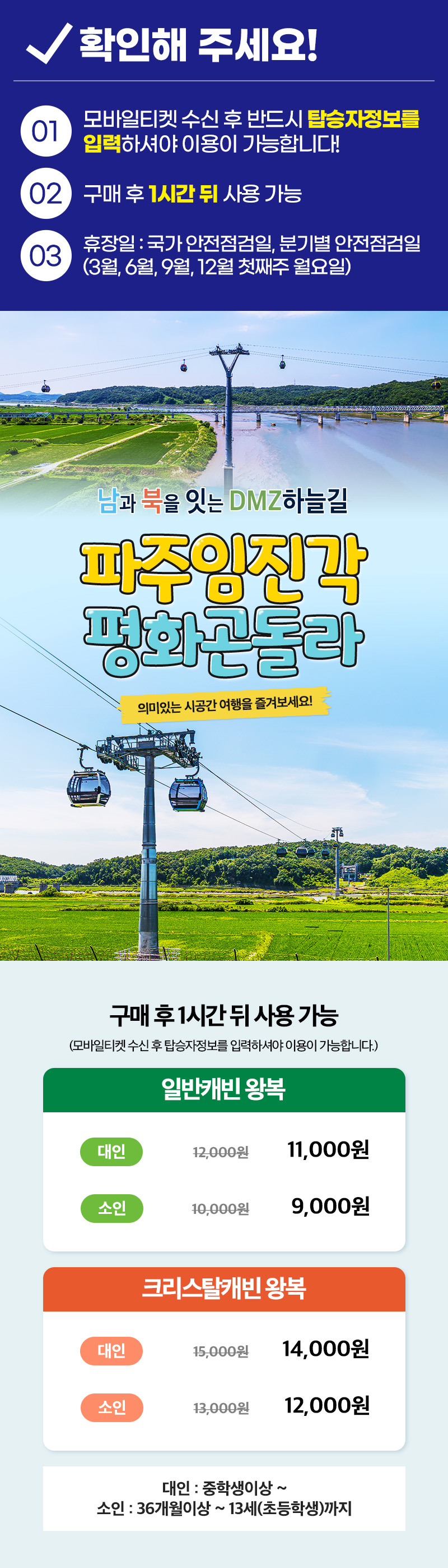 ※ 당일 운행여부와 운행시간은 변동될수있으니 방문 전 홈페이지 참고 부탁드립니다.