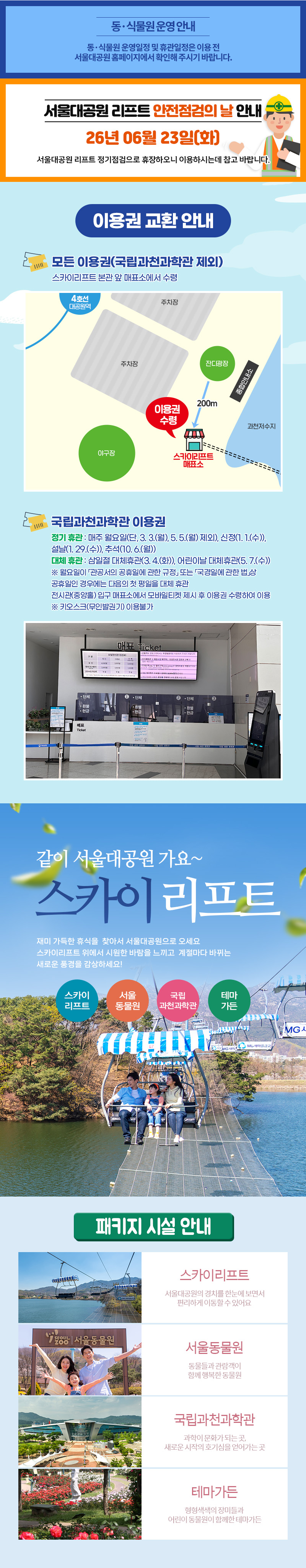 ※ 국립과천과학관을 제외한 모든 이용권 수령은 스카이리프트 본관 앞 매표소에서 가능하며 그외 탑승장에서는 티켓 수령 불가합니다.