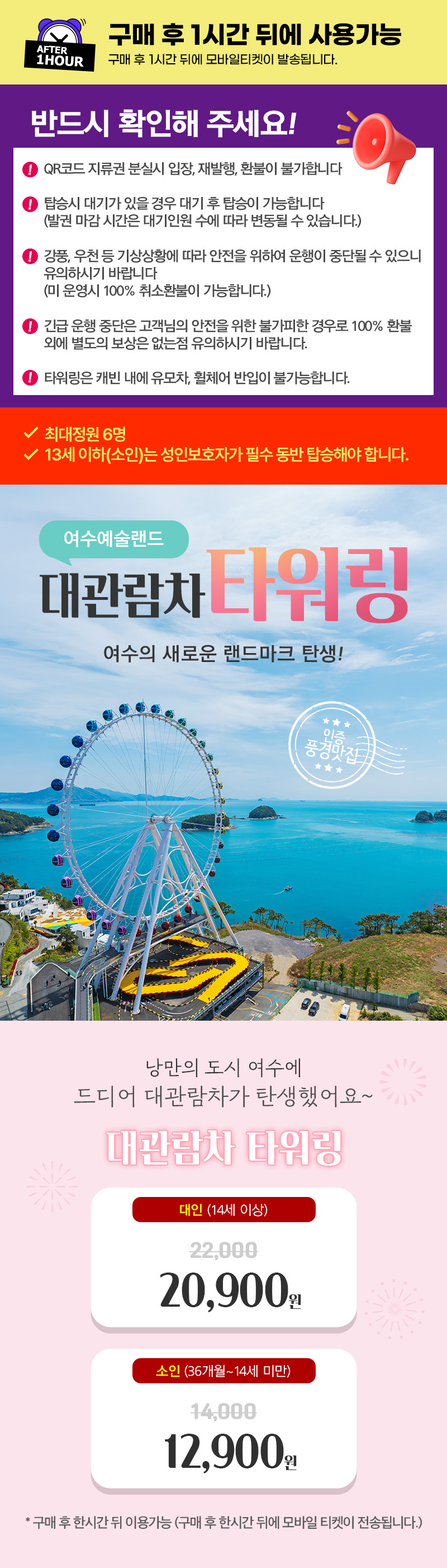 • 임산부는 32주부터는 대관람차 탑승이 제한될 수 있습니다.