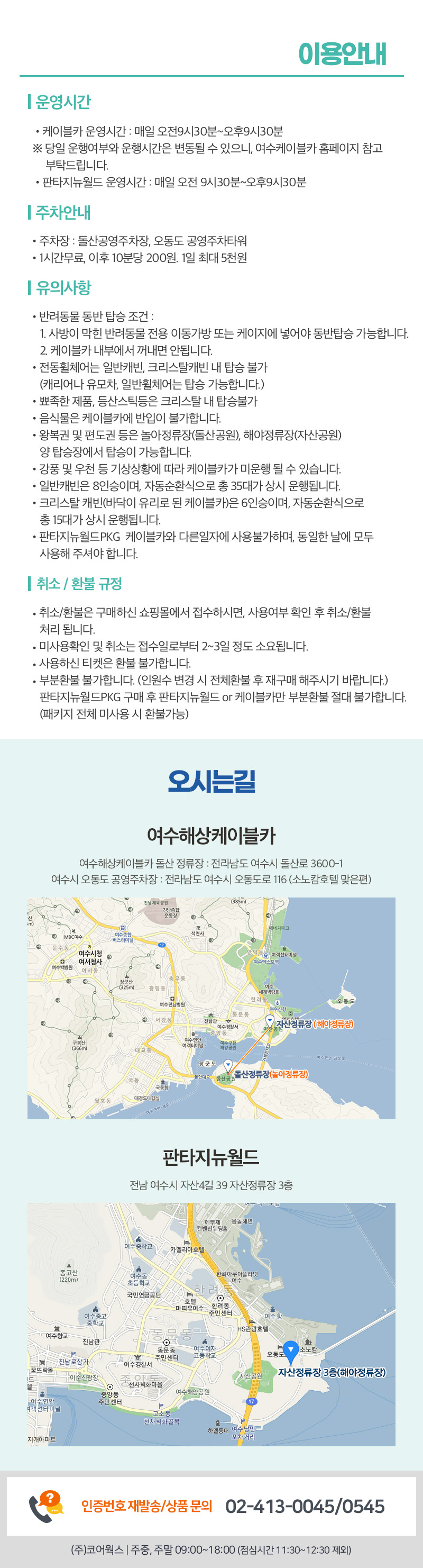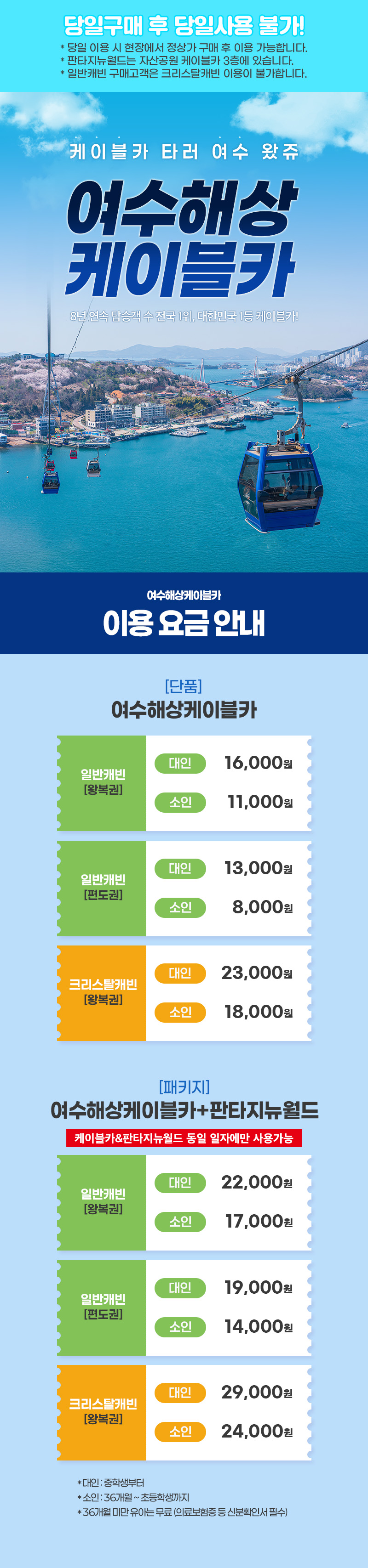 ※ 당일 운행여부와 운행시간은 변동될 수 있으니 여수케이블카 홈페이지 참고 부탁드립니다.